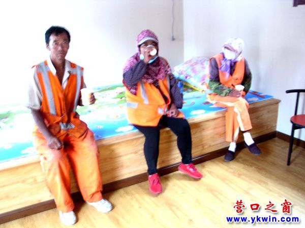 環(huán)衛(wèi)職工在休息室里喝水