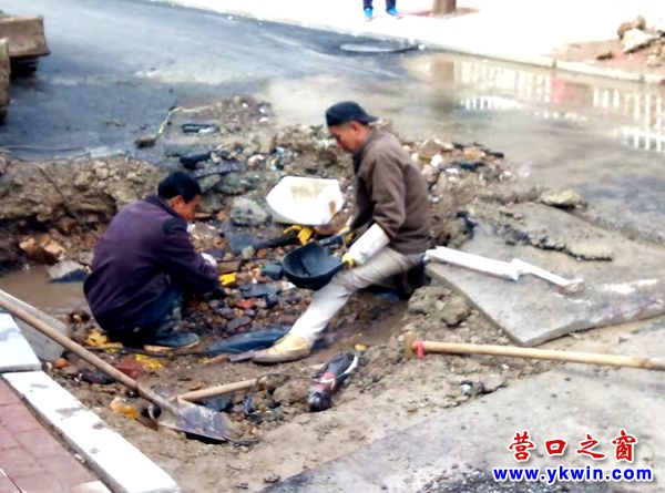 (營口之窗網(wǎng)訊 胡 然)10月12日,營口之窗報道了營口市渤海明珠小區(qū)正鋪瀝青的小馬路突噴十米水柱(熱電管道泄漏所致)的事。10月13日,重返此地見到施工隊挖開了剛剛鋪好的兩處瀝青路面在焊接供暖管道漏點(diǎn)。