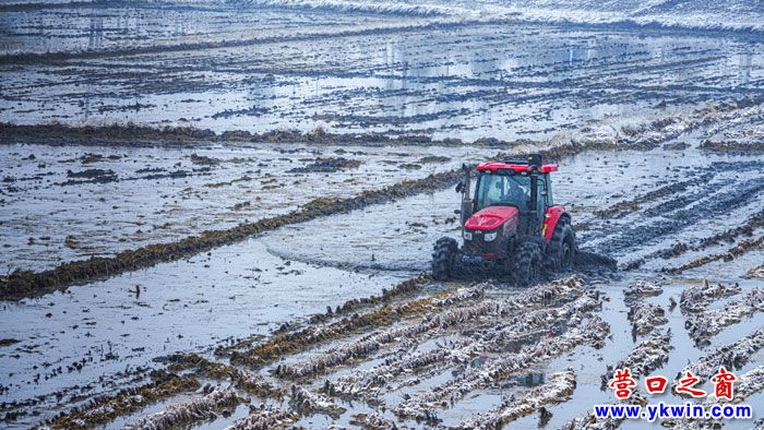 營口:冒雪進(jìn)行水田翻地