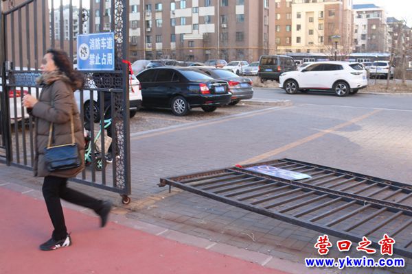 營口之窗網(wǎng)訊(李凱 攝影報(bào)道)日前,營口市西市區(qū)紅運(yùn)河畔新城小區(qū)30-31號樓之間的一扇大鐵門突然倒地,還好沒傷到人,業(yè)主直呼幸運(yùn)。