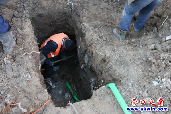 次日一大早,營口水務維修人員便開始了緊張的搶修工作,凜冽的寒風順著巷道吹在維修人員身上,讓人直打哆嗦,進出大門的居民紛紛裹緊衣服,而維修人員為了方便干活,不得不脫去外套,甩開膀子加油干,一點一點地往下挖... 最終于當日18點完成搶修任務。
