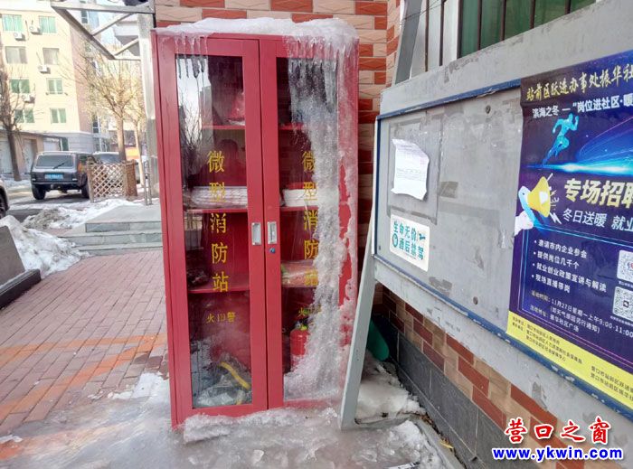 (營口之窗“圖說營口”)營口:冰把微型消防站門凍住了亟待清除