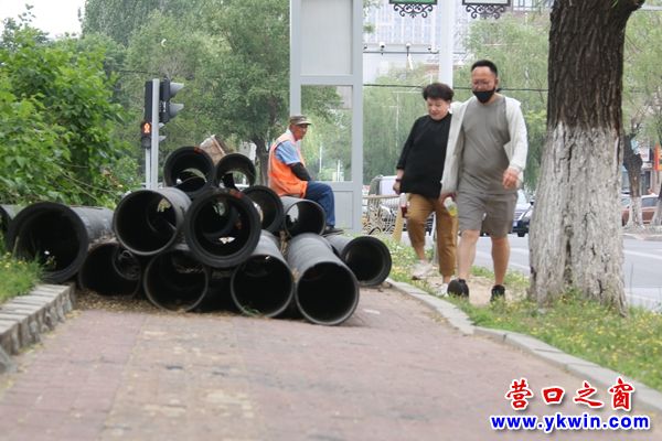 營(yíng)口之窗網(wǎng)訊(李凱 攝影報(bào)道)6月2日,在營(yíng)口市站前區(qū)體育館路與智泉街交匯處南側(cè)的人行道上,堆滿(mǎn)了管件,好似患了“腸梗阻”,又像是遭遇“攔路虎”,給行人帶來(lái)一定的安全隱患。
