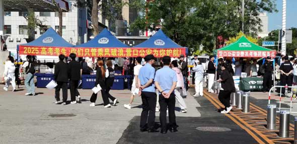 (營(yíng)口之窗“圖說營(yíng)口”)6月7日是今年高考的第一天。8點(diǎn)多鐘,營(yíng)口市第三高級(jí)中學(xué)考場(chǎng)門前人頭攢動(dòng)。一條大紅橫幅格外醒目:2025高考考生:你們只管乘風(fēng)破浪,營(yíng)口公安為你護(hù)航。