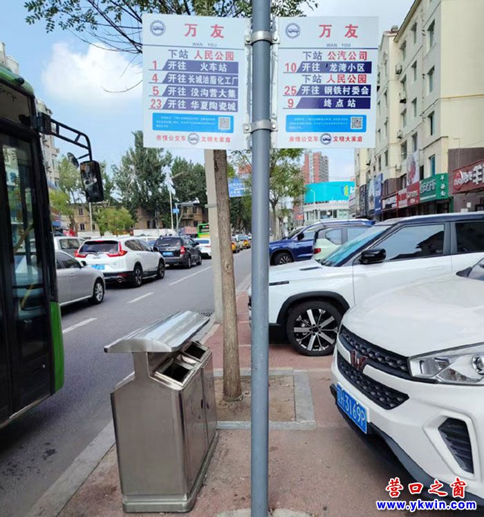 這家超市門前的街邊就是公交車萬友站。這個(gè)站雖有1路、4路、5路、9路、10路、23路和25路公交車??繀s沒有候車座椅和遮陽棚,只有一個(gè)光桿站牌。