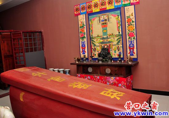 婚嫁廳里面擺放著這口老式棺材,曹錫文說要把生死的過程呈獻(xiàn)給大家。