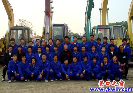 四川安縣36名孤兒學(xué)習(xí)挖掘機(jī)技能合影留念。