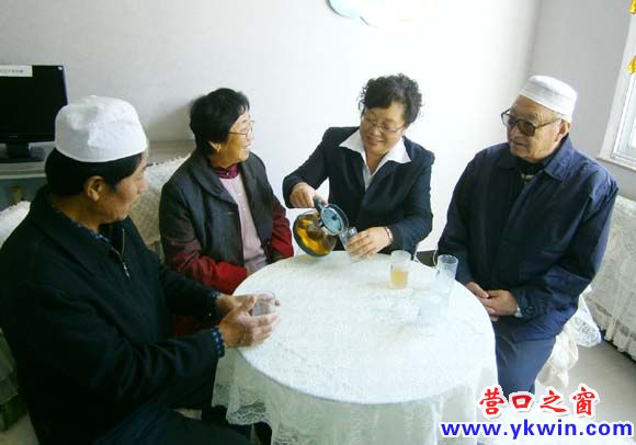 2013年10月,李宜紅(右二)在社區(qū)喝茶室與回族民主人士丁連成等談心。