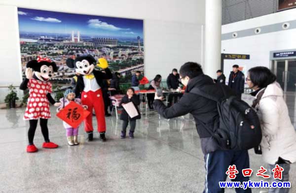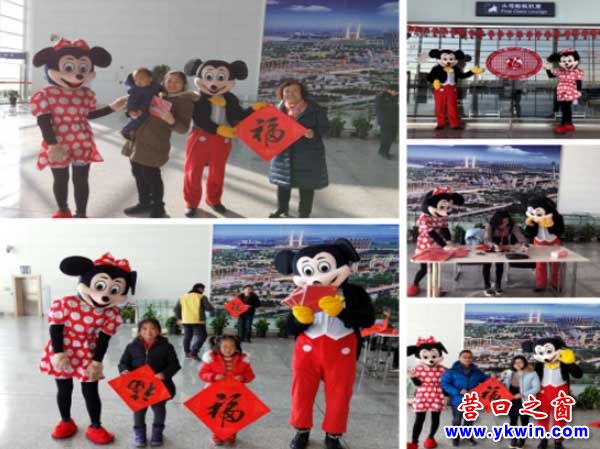 為了給旅客提供一個溫馨的節(jié)日候機(jī)環(huán)境,1月1日營口蘭旗機(jī)場全體地服人員在候機(jī)樓裝飾了中國結(jié)、福字貼等飾物,增加了迎接“元旦”的節(jié)日氣息。機(jī)場工作人員在候機(jī)大廳或扮成米老鼠或現(xiàn)場為旅客寫福字、送祝福,積極與旅客互動,旅客也踴躍參與,使得現(xiàn)場氣氛異常熱烈,濃濃的節(jié)日氛圍讓來往的旅客倍感溫暖。