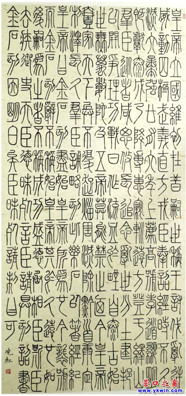 篆書之妙,猶如龍蛇之舞動,蘊含著深沉的歷史文化和豐富的思想內(nèi)涵,讓人沉醉其中。采用柳葉篆書體創(chuàng)作的《陋室銘》,絕對是上乘佳作,仿若是晉衛(wèi)瓘的嫡系真?zhèn)鳎?/p>